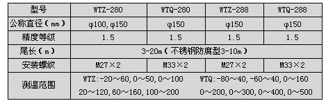 備注:WTZ-288,WTQ-288 電接點溫度計接點功率為10Va